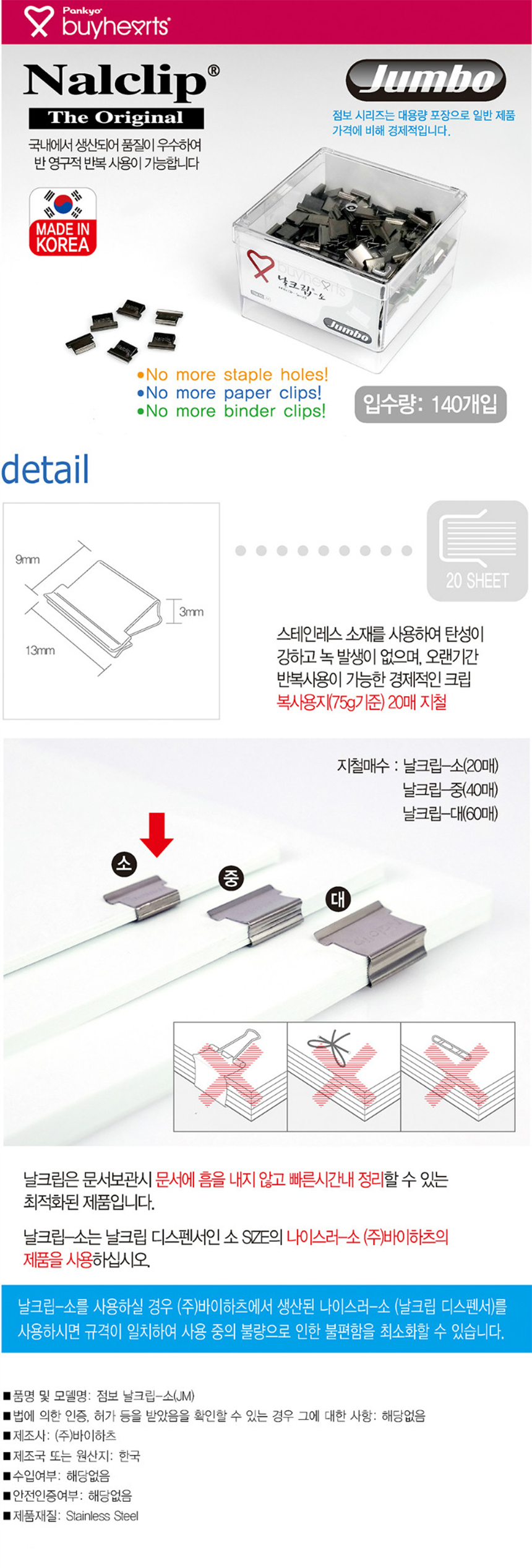 스마일 날클립 대용량 실버로 서류를 깔끔하게 정리할 수 있습니다.