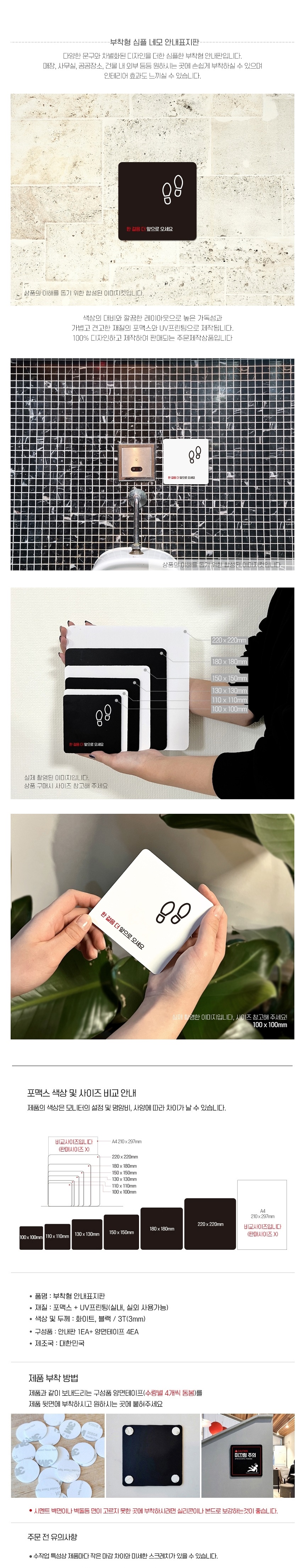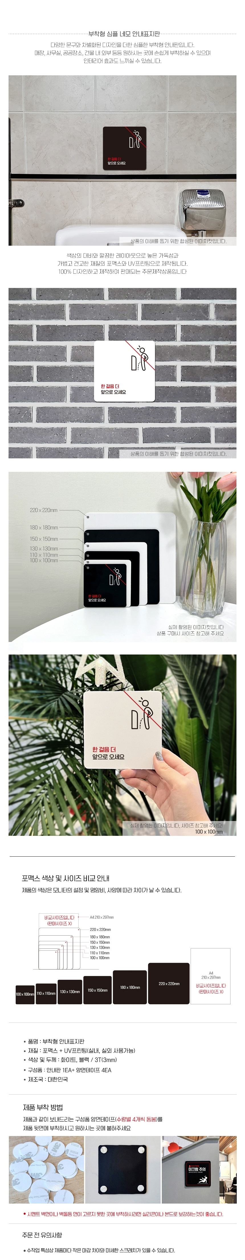 | 한걸음더앞으로오세요2 부착형 안내판 18x18cm 알림 표지판 안내문구 매장 홍보 화이트(78335) 블랙(78335) |