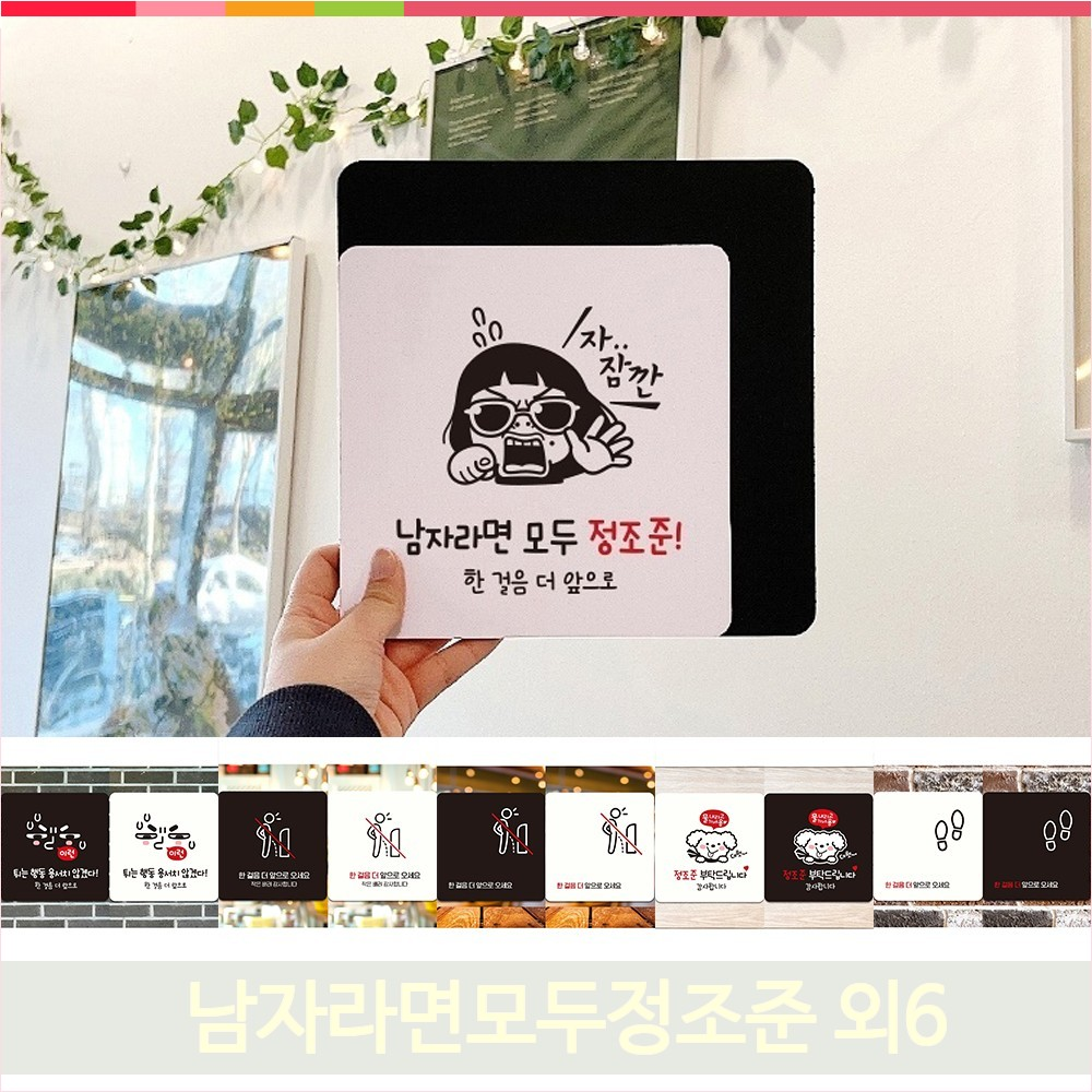 | 남자라면모두정조준 부착형 정사각 안내판 18x18cm 알림 표지판 안내문구 매장 홍보 화이트(78339) 블랙(78339) |