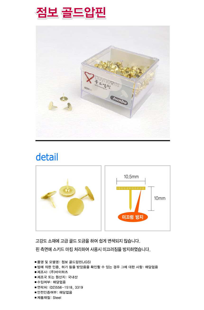 | 바이하츠 점보 골드압핀 JGS 개(1) 개(1) 골드 (37730) |